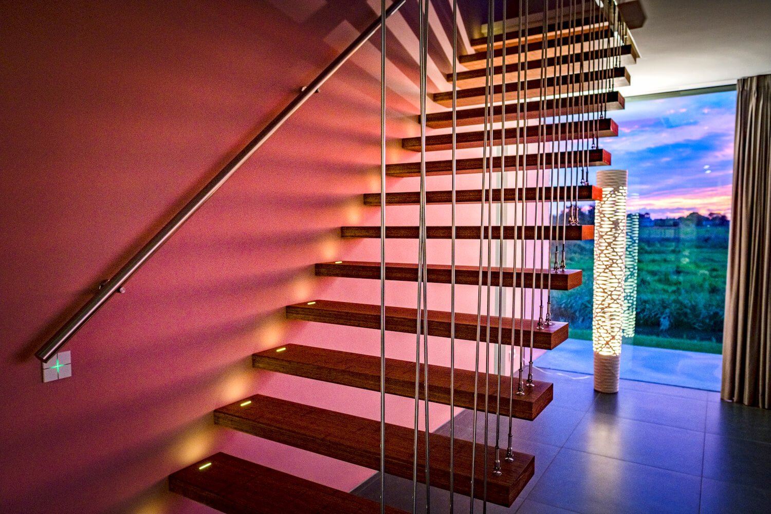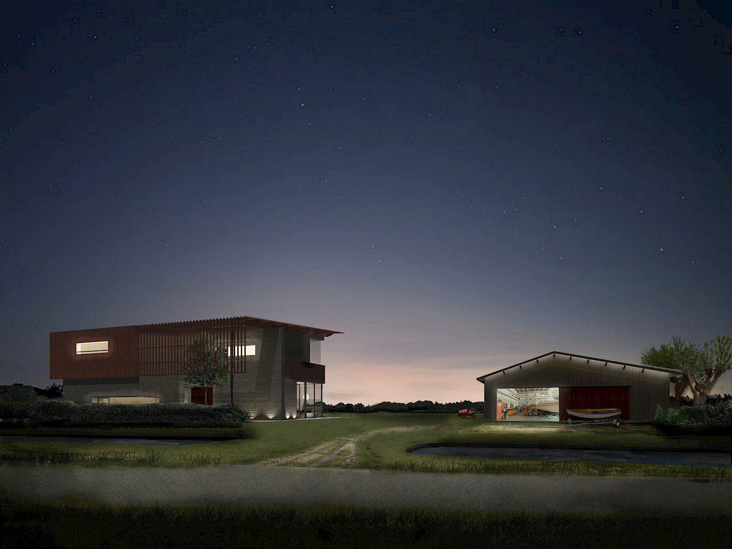 Panoramic views of the overwhelming nature from the living rooms and the bedrooms. Working on the sailboats in the boathouse. Relaxing after a hard day's work, riding on the ride-on mower, directly out of the storage room onto the lawn. These were important experiences to design.