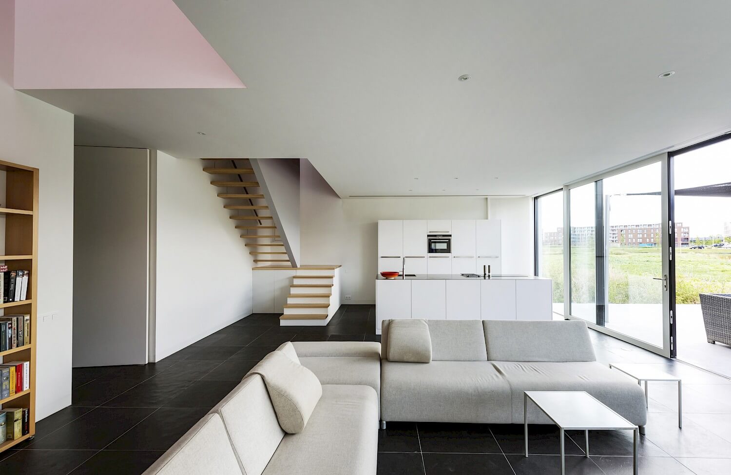 The 10 meter high vertical void of Cube House spans the total height of the house. It allows getting the sunlight deep into the building. A 10 meter long roof light ensures that walking the stairs, going from the bedroom to the bathroom, having a shower or relaxing in the bath can all be experienced in close contact with the weather circumstances. These qualities will be present both in the one bedroom home, as well as in the 4 bedroom home.