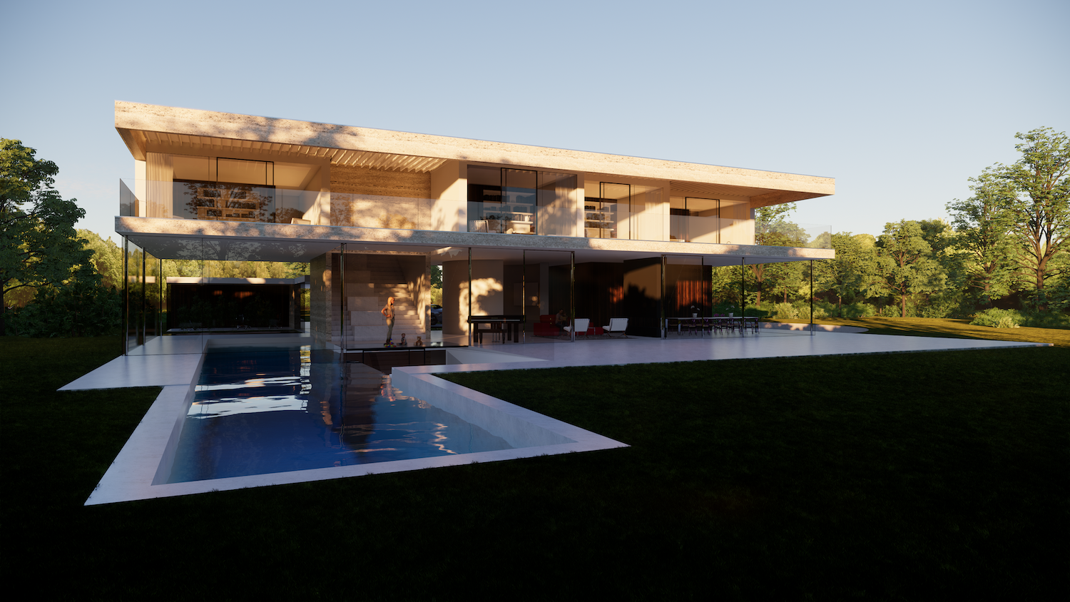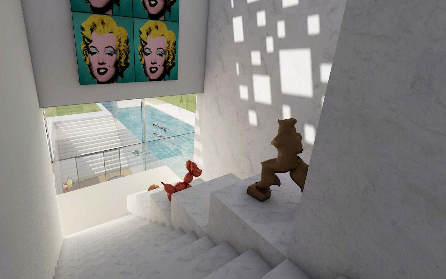 Entering your home with a red carpet treatment feeling, having private living room concerts, swimming underwater from the inside to the outside of the house while having eye contact with someone in the jacuzzi at your own private beach, going up the stairs surrounded by art, relaxing in your bedroom as if you were in your own private cabana: hopefully these experiences make the family longing to return home wherever they are in the world.