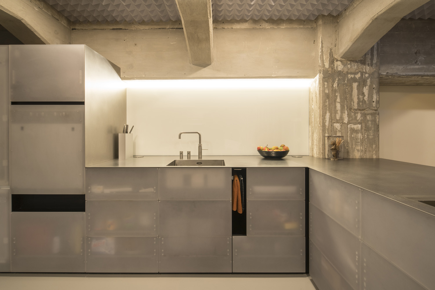 Vincent de Rijk also made the semitranslucent epoxy raisin panels of the kitchen cupboards.