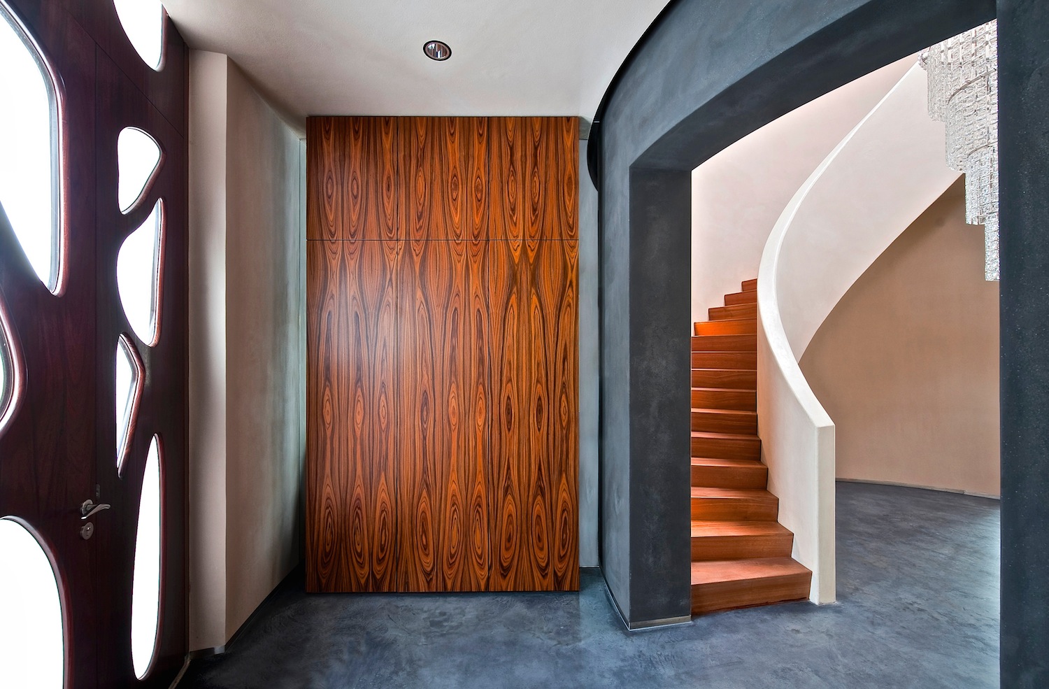 According to Salvador Dalí’s 'paranoiac-critical method', design is 'an enlargement of the problem instead of its immediate solution'. Using this method, the client’s desire to create enough space to hang paintings was translated into a cylindrical main building with the spiral structure of a shell. Only then did we find the solution for the paintings. This meant that the method posed a fresh challenge to design thinking and styling.