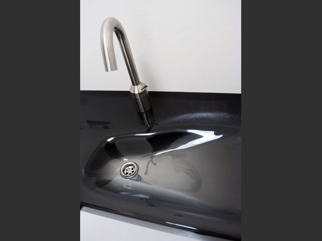 Voor de hoofdstructuur van het interieur gebruikten we blanke multiplex panelen en wit stucwerk om aan te sluiten bij de bestaande informele materialen. Om het karakter van het interieur kracht bij te zetten hebben we een kookeiland toegevoegd, een leren kamerscherm en speciaal ontworpen wasbanken van epoxyhars.