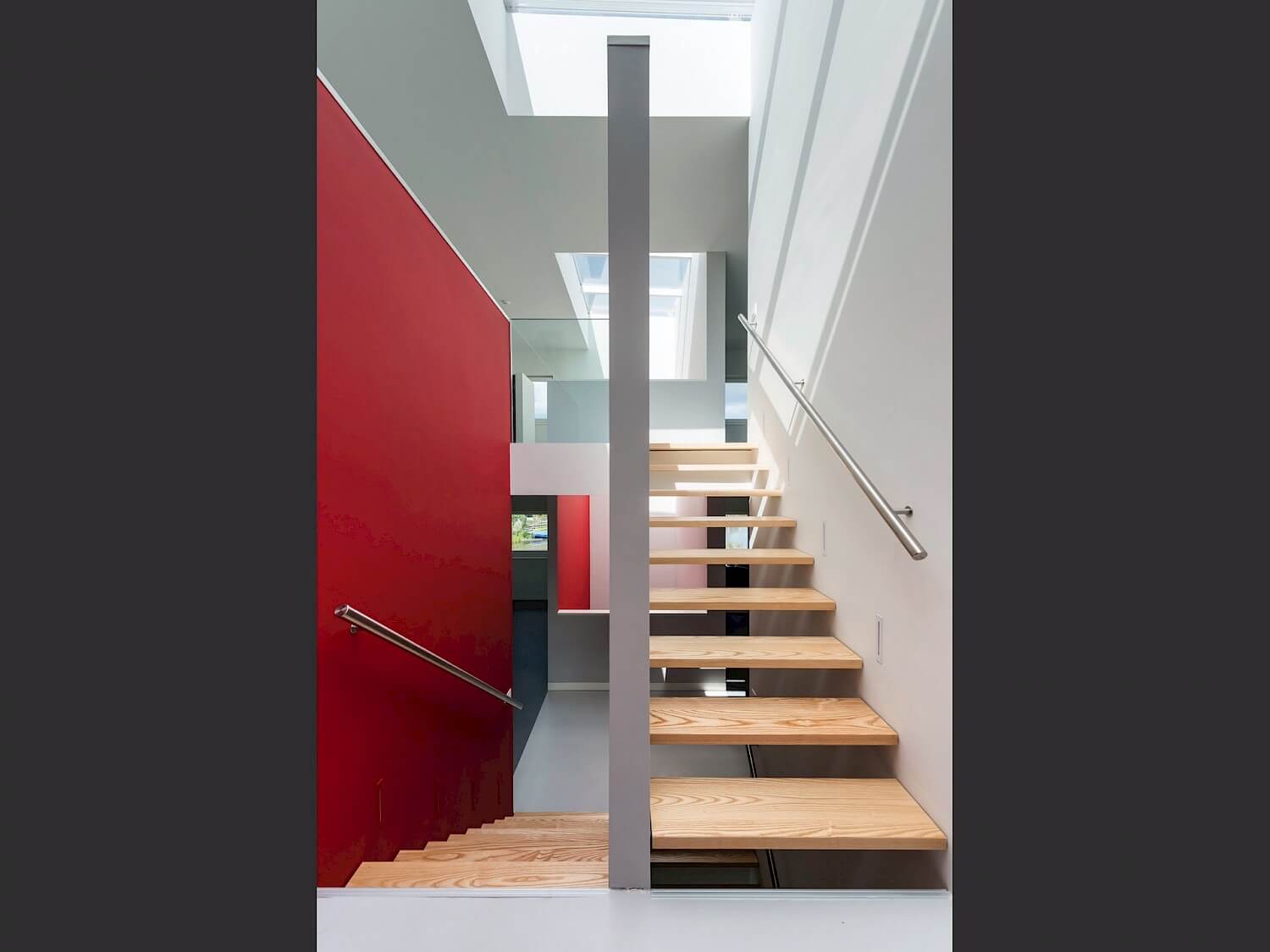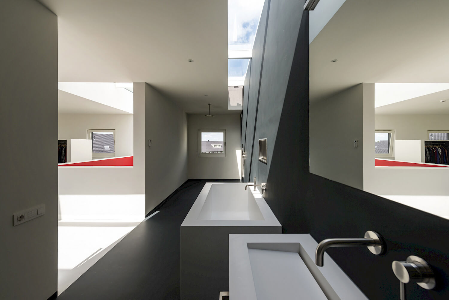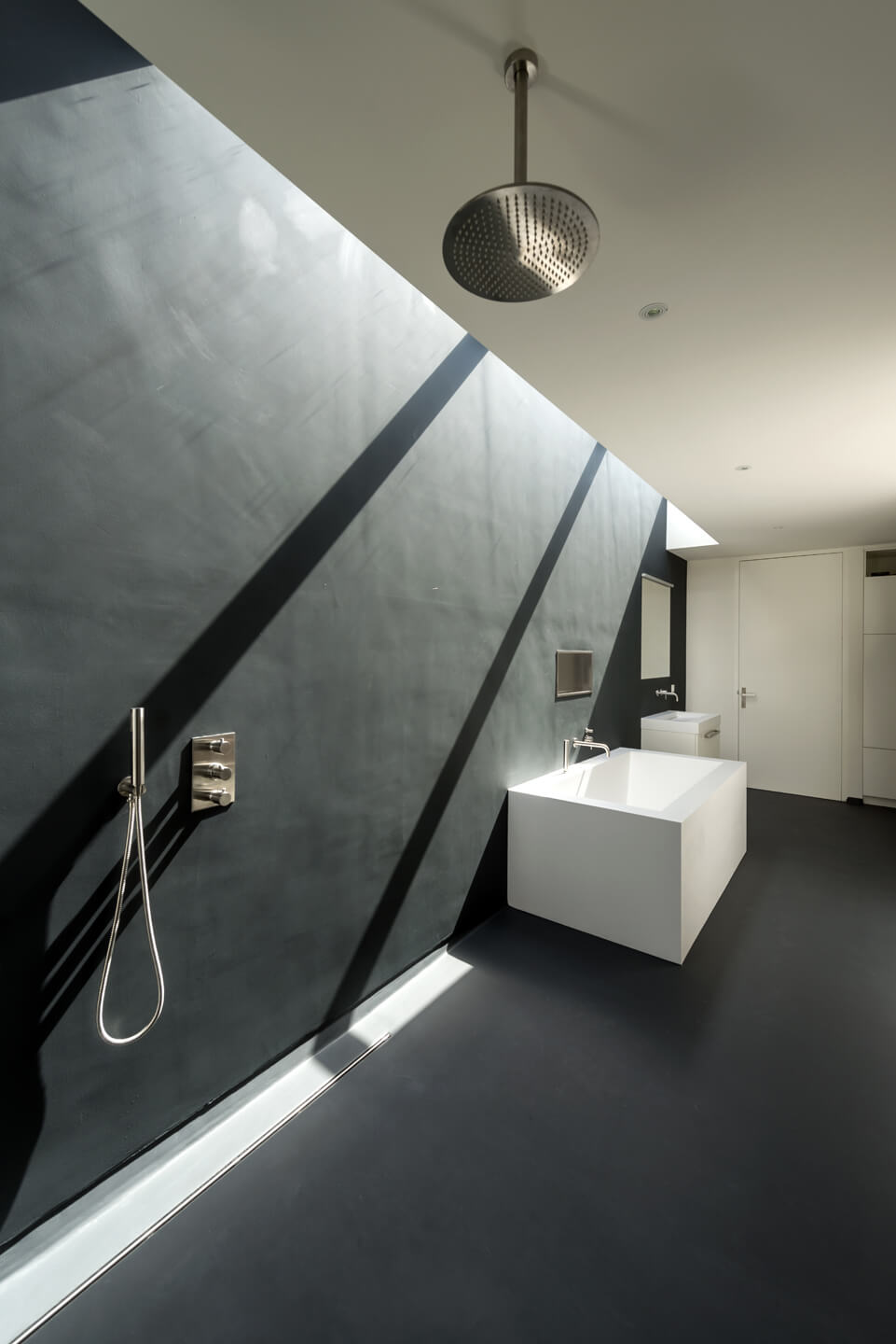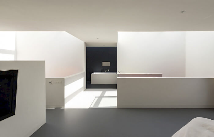De 10 meter hoge verticale vide van Cube House beslaat de totale hoogte van het huis. Het zorgt ervoor dat de zon tot diep in de woning kan komen. Een 10 meter lang daklicht zorgt er voor dat als je de trap op of af loopt, als je van de slaapkamer naar de badkamer loopt, als je een douche neemt of aan het ontspannen bent in bad, je contact kunt houden met de weersomstandigheden buiten. Deze kwaliteiten zullen zowel in de éénkamerwoning als in de 5 kamer woning terug te vinden zijn.