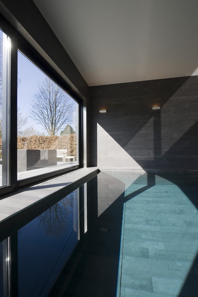 De villa is ontworpen voor een moderne oosterse levensstijl - in het koken en in het koesteren van de roots van je familie. De locatie van de villa is westers: Hollands grasland met paarden in de wei. Voor ons was het interessant om te spelen met dit oost west thema. We hebben een binnenplaats toegevoegd met tropische planten naast het binnenzwembad en een 20 meter lange rode muur in de gang. Zo geven het lopen door de rode gang, het binnenzwembad en de tropische binnenplaats een oosters tintje aan de moderne woonbeleving.
