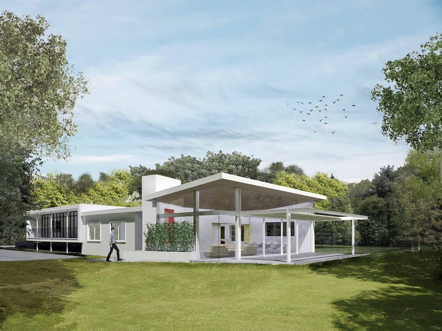 Ik herinner me het eerste bezoek. Het 10.000 m2 park met vijver en historische torens, omlijst door enorme oude bomen, was indrukwekkend. De bestaande villa was een bouwwerk van een leerling van de beroemde Nederlandse architect Gerrit Rietveld. De garage in het souterrain met plaats voor 3 auto's, een enorme werkkamer en slaapkamer met glas van vloer tot plafond richting de tuin, de keuken: in principe alle goed herbruikbaar.